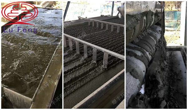 泥漿經(jīng)布料斗均勻送入濾網(wǎng),隨著濾帶向前運(yùn)行,游離態(tài)的水在自重作用下通過足夠長(zhǎng)的重力自由脫水區(qū)流入接水槽,重力脫水段也可以說是高度濃縮段,主要作用是脫去泥漿中的大部分自由水及間隙水,使泥漿的流動(dòng)性減小,便于泥漿在濾網(wǎng)上的較厚堆積,增強(qiáng)泥漿對(duì)壓榨的承受力。